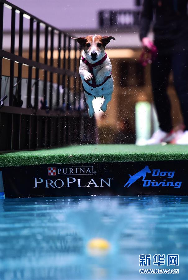 5月19日,在德國(guó)多特蒙德舉行的寵物展上,一只杰克羅素梗參加跳水比賽。 為期三天的德國(guó)多特蒙德“狗和貓”寵物展19日落幕。寵物展期間,人們帶著自己的“萌寵”來(lái)到會(huì)場(chǎng),參與寵物跳水、舞蹈、選美等趣味比賽,并與其他寵物愛好者及展商交流互動(dòng)。 新華社記者逯陽(yáng)攝