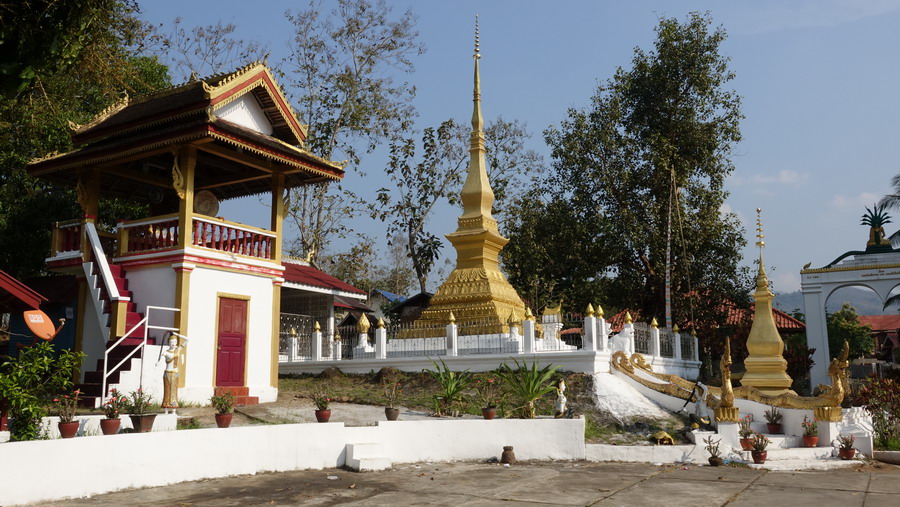 其中的大殿具有老撾經(jīng)典的寺廟建筑風(fēng)格,與配殿、琉璃塔、白塔等組成一個精致的佛寺建筑群。李仁奇 攝