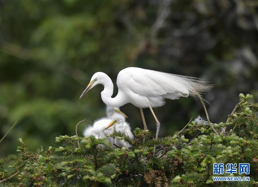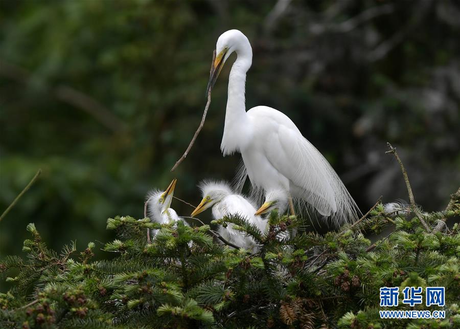 在江西省南昌市新建區(qū)象山森林公園內(nèi),白鷺和自己的雛鳥在一起(5月21日攝)。 近日,在江西省南昌市新建區(qū)象山森林公園內(nèi),已安家筑巢的大批鷺鳥陸續(xù)孵化出了后代。象山森林公園有著“鷺鳥王國”的美譽,生態(tài)環(huán)境良好,每年都會吸引白鷺、蒼鷺、夜鷺等種類的鷺鳥飛抵棲息和繁衍后代。 新華社記者 彭昭之 攝