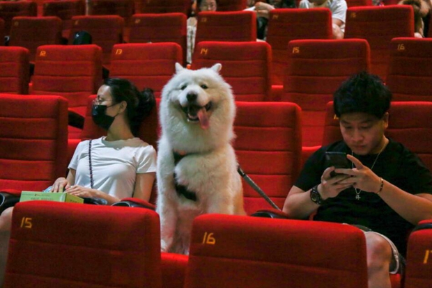 這只狗狗大概是第一次進電影院