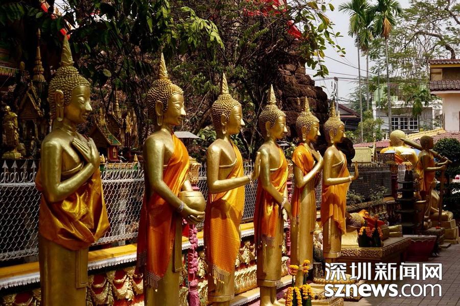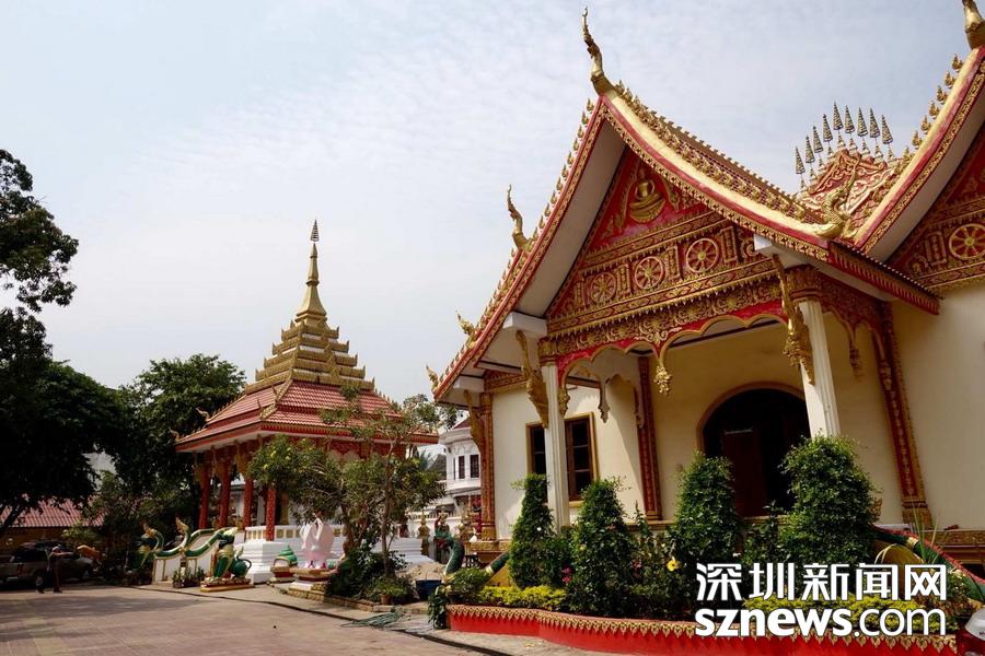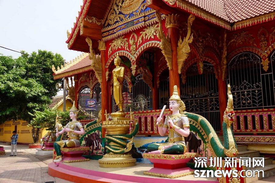 西蒙寺是萬象香火最旺盛的一個寺廟,又稱神城寺,每天有很多當(dāng)?shù)厝思坝慰蛠磉@里祈福,尤其受泰國游客鐘愛。李仁奇 攝