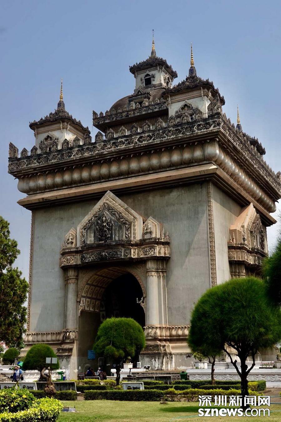 凱旋門位于市中心,為紀(jì)念老撾人民頑強(qiáng)抵抗外敵入侵而建,門高45米,寬24米,遠(yuǎn)觀和法國巴黎的凱旋門相似,但上部是典型的老撾風(fēng)格,拱門基座上的雕刻很精美。站在它的頂部能夠一覽周邊的政府建筑和整個城市的風(fēng)貌。李仁奇 攝