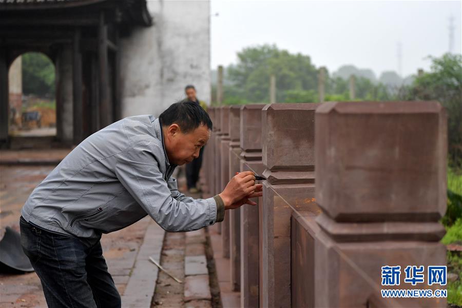 4月28日,在江西省南昌市南昌縣岡上鎮(zhèn)省級文物保護單位“吳氏家廟”內(nèi),搶修工程隊的工人檢查剛完成修復的護欄。近年來,江西省南昌市南昌縣推動古村落保護工作。2019年,首批搶修工程隊進駐南昌縣岡上鎮(zhèn),對當?shù)刂氖〖壩奈锉Wo單位“吳氏家廟”及縣級文物保護單位“吳培荊堂古建筑群”進行搶救性維修。同時當?shù)卣€制定文旅規(guī)劃,讓文物保護與觀光旅游相結(jié)合,推動鄉(xiāng)村振興。 新華社記者 彭昭之 攝