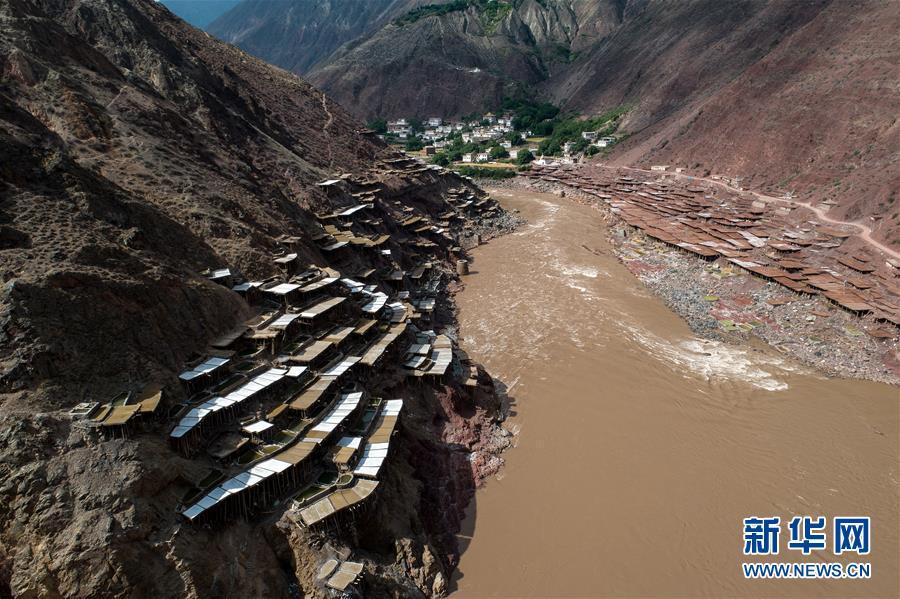 這是西藏芒康縣納西民族鄉(xiāng)的古鹽田景觀(5月22日無人機(jī)拍攝)。 位于西藏昌都芒康縣瀾滄江畔的古鹽田,至今仍保持最原始的手工曬鹽方式。據(jù)史料記載,唐朝時(shí)期當(dāng)?shù)鼐烷_始曬鹽。鹽田在瀾滄江兩岸依山而建,由多根木柱搭架,架上用透水性強(qiáng)的泥土鋪成平面夯實(shí),當(dāng)?shù)鼐用駨臑憸娼系柠}井、鹽池中取出鹵水倒入鹽田,經(jīng)陽光蒸曬、風(fēng)干,結(jié)晶成鹽。遠(yuǎn)遠(yuǎn)望去,鹽田錯(cuò)落有致,田中鹵水宛若鏡面,形成壯麗奇觀。 新華社記者 李鑫 攝