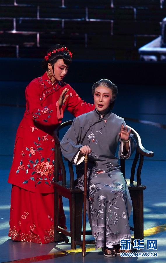 6月2日,蘇州市蘇劇傳習(xí)保護(hù)中心演員在第十二屆中國藝術(shù)節(jié)閉幕式上匯報演出獲得文華大獎的蘇劇《國鼎魂》選段。 新華社記者 任瓏 攝
