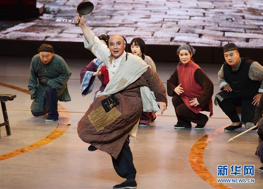 6月2日,獲得文華表演獎的演員梁偉平在第十二屆中國藝術節(jié)閉幕式上匯報演出淮劇《武訓先生》選段。 新華社記者 任瓏 攝