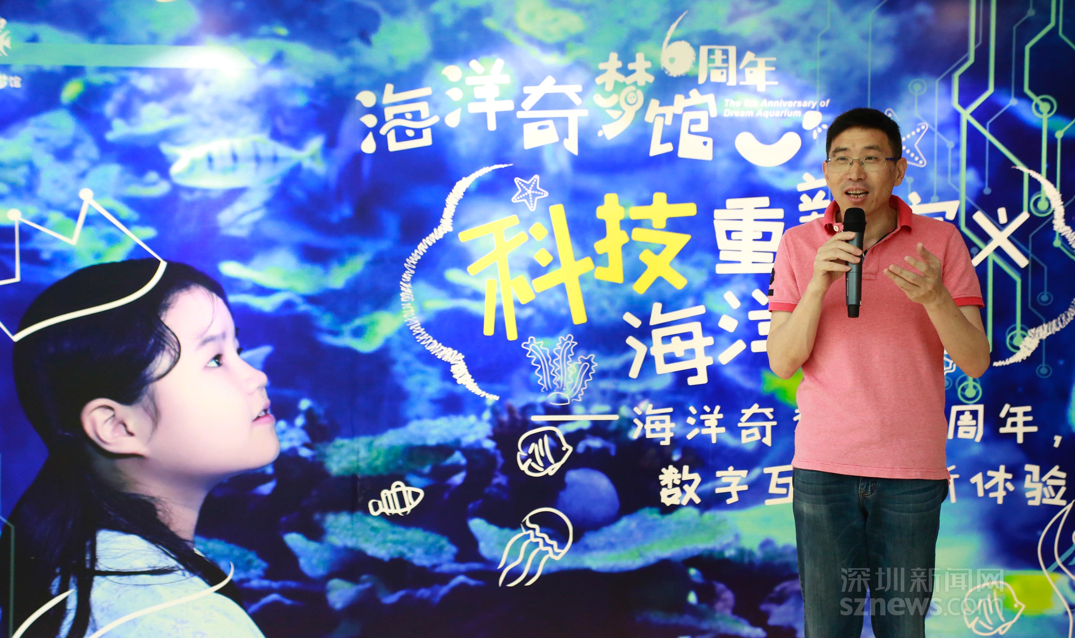洪濤向記者介紹:“從2013年向公眾開放,海洋奇夢館就以令人驚嘆的‘科技范兒’占據(jù)深圳親子旅游行業(yè)的市場,隨著時代的發(fā)展,高科技手段將越來越真實的呈現(xiàn)出海洋的真實面貌?!焙闈呦蛘凇坝芜钡囊恢弧昂}敗?,向記者介紹,“海洋奇夢館要做的,不是為游客提供一個嬉笑玩樂的場所,我們希望讓公眾了解,真實的海洋世界與人類社會是需要互相尊重的?!?/p>