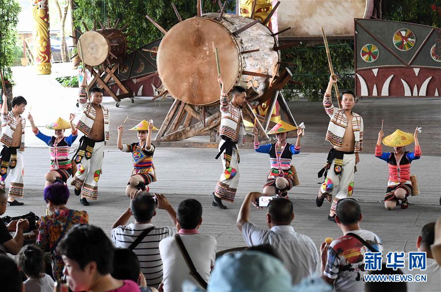 游客在觀賞基諾族大鼓舞表演(6月1日攝)。 在云南省西雙版納傣族自治州景洪市基諾山基諾族鄉(xiāng)的基諾族村寨,每天的基諾大鼓舞表演吸引了眾多游客前來觀賞體驗,帶動了基諾族群眾就業(yè)和增收?;Z族大鼓舞蘊涵豐富的歷史文化內(nèi)涵,已被列入國家級非物質(zhì)文化遺產(chǎn)保護名錄。 新華社記者 楊宗友 攝