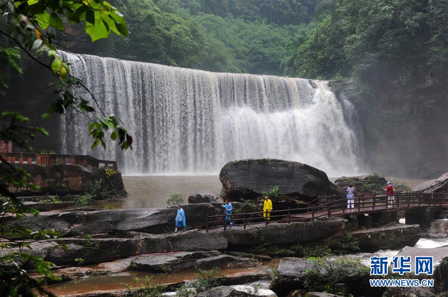 6月5日,游人在貴州赤水丹霞旅游區(qū)“美人梳”瀑布游覽。 貴州遵義赤水市有眾多大大小小的瀑布群,素有“千瀑之市”的美譽,飛瀑美景吸引八方游客前來賞景度假。 新華社記者鄭雅寧攝