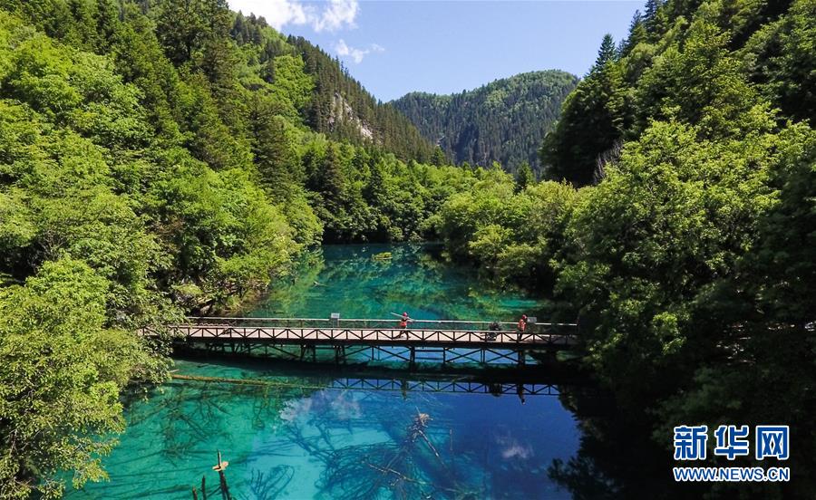 這是九寨溝景區(qū)內(nèi)一景(6月5日無人機拍攝)。新華社記者薛玉斌攝