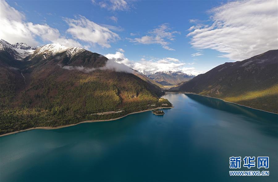 西藏林芝境內(nèi)的巴松湖(5月2日無人拍攝)。