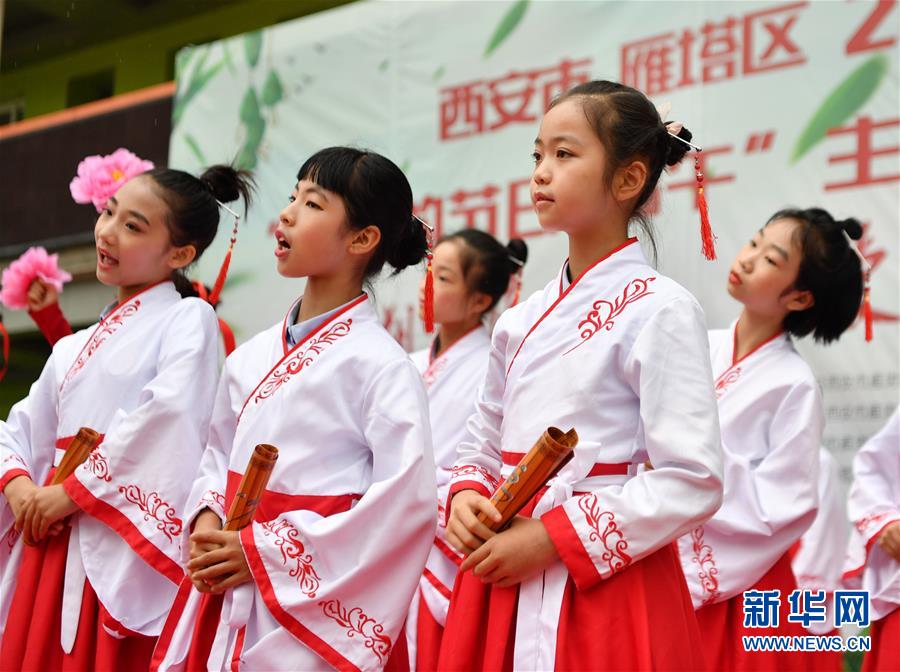 6月5日,陜西師范大學附屬小學的學生朗誦古詩詞。新華社記者 張博文 攝