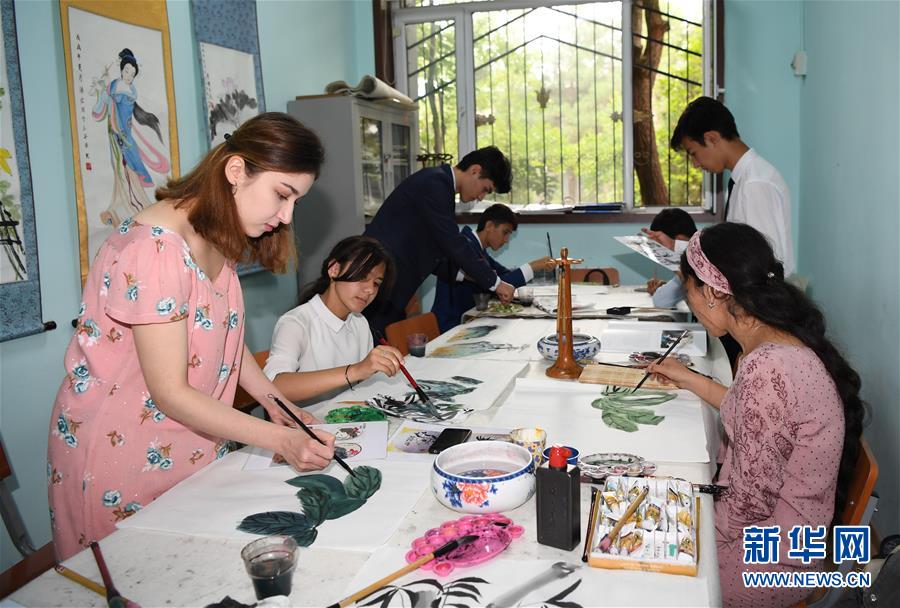 6月10日,在塔吉克斯坦首都杜尚別,學(xué)生在塔吉克斯坦民族大學(xué)孔子學(xué)院畫畫。 塔吉克斯坦共和國,簡稱塔吉克斯坦,是位于中亞東南部的內(nèi)陸國家。塔吉克斯坦是多民族國家,全國共有86個民族,人口約910萬。 新華社記者沙達(dá)提攝