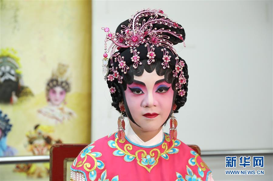粵劇小演員陸瑞徽在準(zhǔn)備折子戲《艷曲醉周郎》的表演(6月8日攝)。 聲輝粵劇推廣協(xié)會(huì)成立于2003年,是香港重要粵劇藝術(shù)團(tuán)體之一,致力于向青少年推廣粵劇。協(xié)會(huì)目前有兩個(gè)初班,3個(gè)中班,一個(gè)青少年班。粵劇又稱“廣東大戲”,表演技藝包括“唱做念打”,即唱功、身段、臺(tái)詞、武打,主要流行于廣東、廣西和香港、澳門等地區(qū)。2009年,粵劇被列入聯(lián)合國教科文組織人類非物質(zhì)文化遺產(chǎn)代表作名錄,今年正逢十周年。 新華社記者 吳曉初 攝