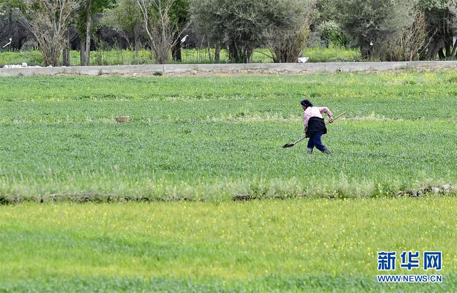 在日喀則郊區(qū),一名農(nóng)民在耕作(6月22日攝)。新華社記者 張汝鋒 攝
