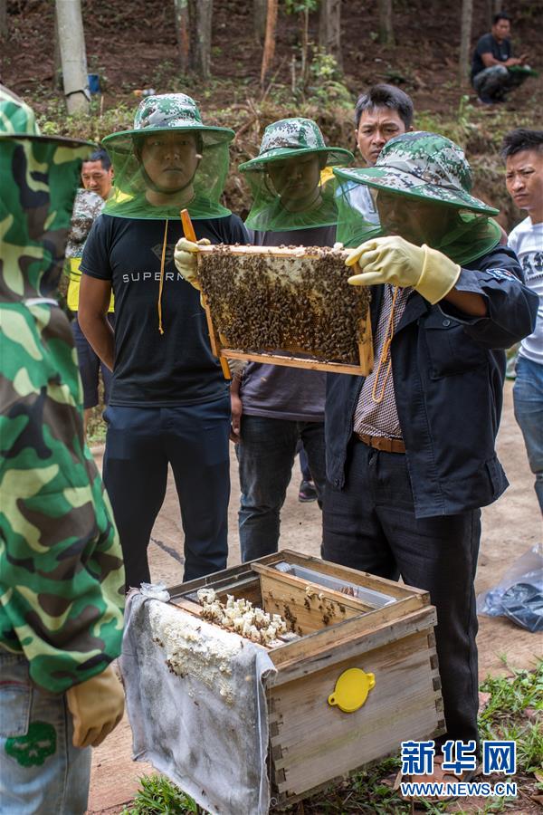 在云南省西盟縣勐梭鎮(zhèn)班母村中華蜂養(yǎng)殖基地,村民在學(xué)習(xí)養(yǎng)蜂技術(shù)(6月16日攝)。  新華社記者 胡超 攝