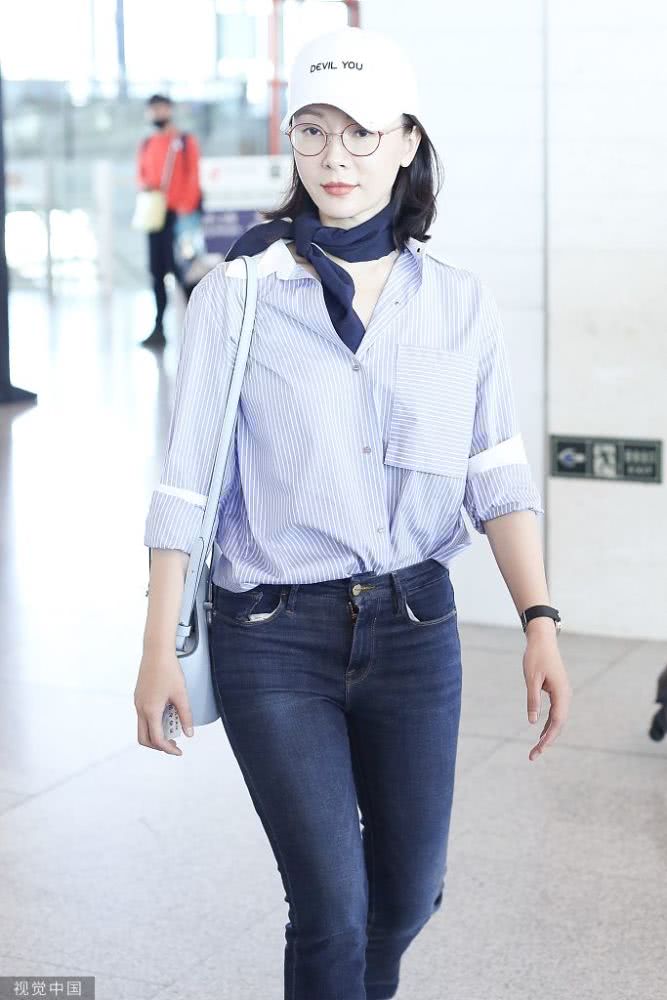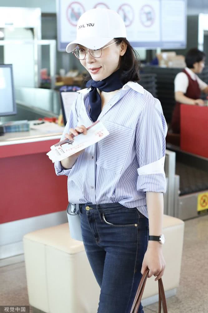 2019年6月30日,北京,陳數(shù)亮相機(jī)場,她身穿條紋襯衫搭配藍(lán)色方巾完美詮釋知性美,簡單造型非常耐看,已經(jīng)42歲的她皮膚也是亮白嫩滑,堪稱凍齡美人了。