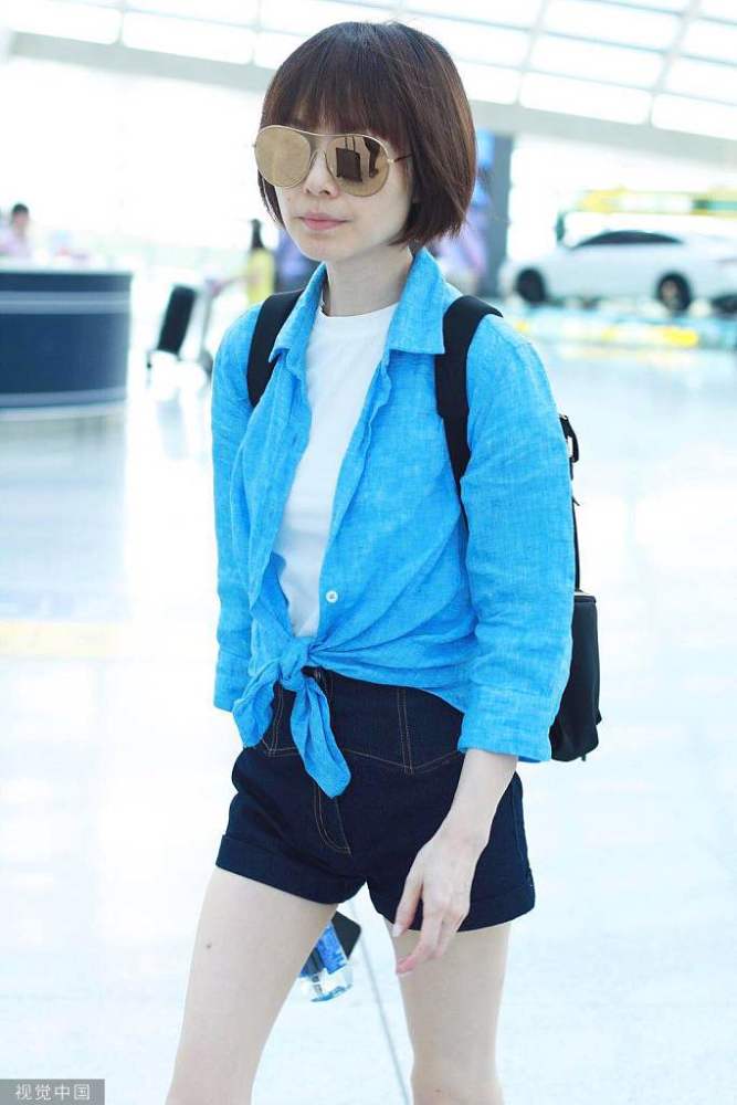 2019年5月25日,北京,魯豫現(xiàn)身機場。她梳著齊耳短發(fā)氣質(zhì)清爽干練,穿藍色襯衫內(nèi)搭白色t恤,夏日清涼氣息撲面而來。