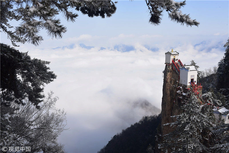 2019年3月3日,陜西商洛,位于鎮(zhèn)安縣的塔云山景區(qū)云海翻騰,宛如仙境。
