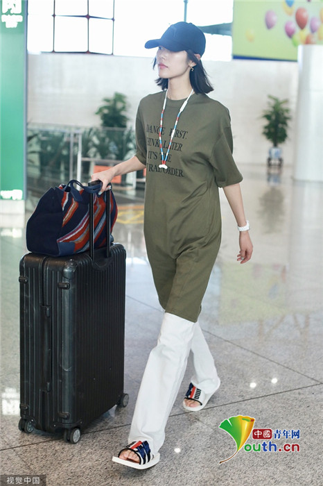 2019年7月23日,北京,劉雯現(xiàn)身機(jī)場。她頭戴棒球帽,身穿oversize上衣腳踩拖鞋,走慵懶隨性風(fēng),盡顯超模氣場,露出招牌笑容親切又有感染力。