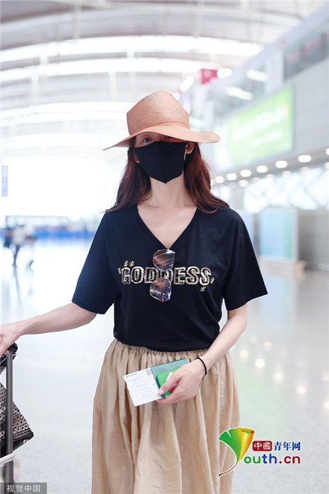 2019年7月23日,上海,林志玲現(xiàn)身機(jī)場,穿著打扮與三天前在臺(tái)北機(jī)場相比毫無變化,依舊身穿黑體恤搭配米色休閑褲,墨鏡也依舊掛在胸前。