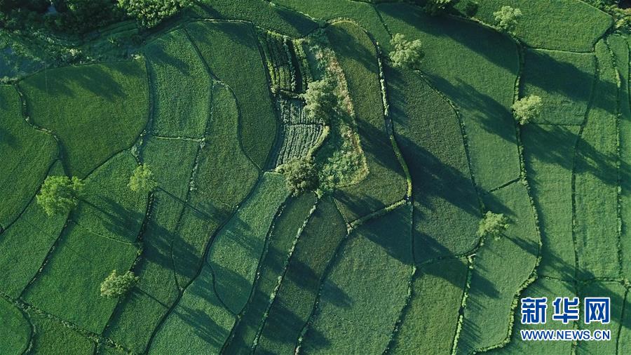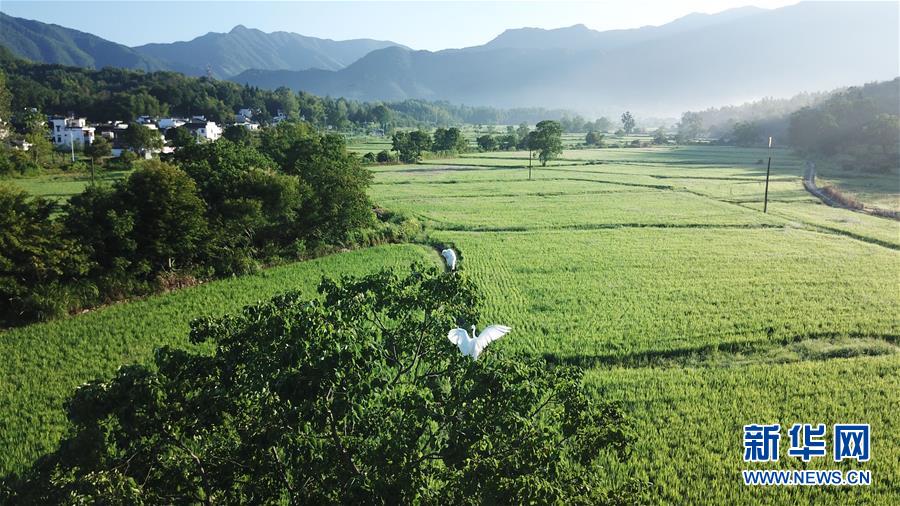 這是8月4日無(wú)人機(jī)拍攝的安徽黟縣宏村風(fēng)景區(qū)附近的農(nóng)田晨景。新華社記者 張端 攝