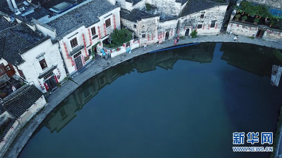 這是8月4日無(wú)人機(jī)拍攝的安徽黟縣宏村風(fēng)景區(qū)晨景。
