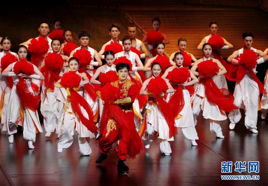 8月7日晚,舞蹈家黃豆豆(前)和舞蹈演員在表演中。 新華社記者 劉穎 攝