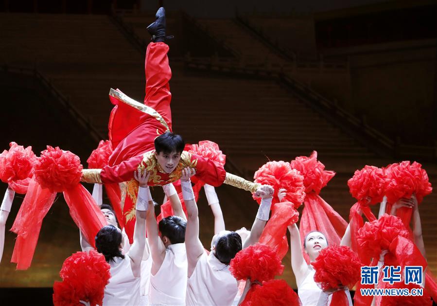 8月7日晚,舞蹈家黃豆豆(上)和舞蹈演員在表演中。新華社記者 劉穎 攝