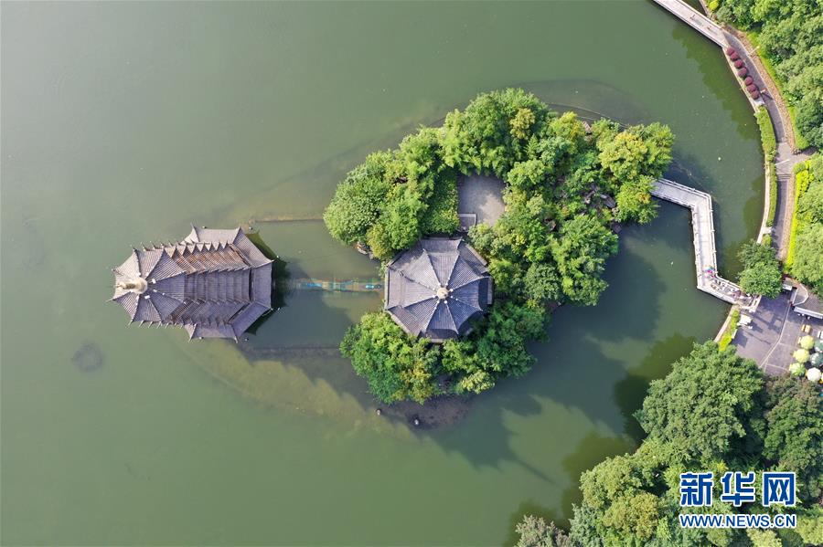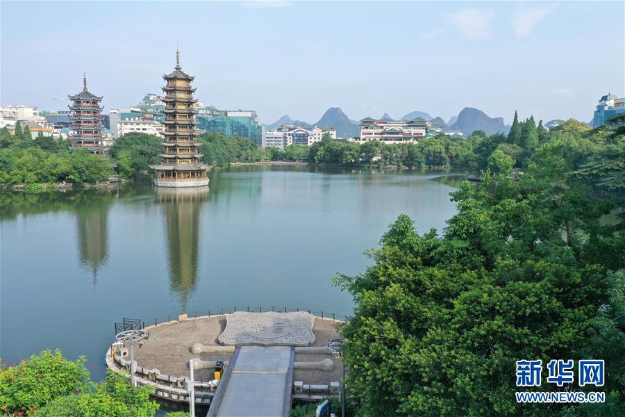 桂林市榕湖景觀(7月1日無人機(jī)拍攝)。 夏日時節(jié),廣西桂林市區(qū)內(nèi)的榕湖、杉湖、桂湖、木龍湖等地綠樹成蔭、景色迷人。 新華社記者陸波岸攝
