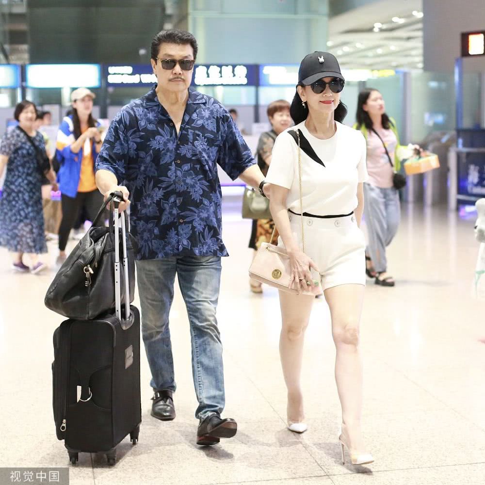 2019年8月10日,北京,趙雅芝與老公黃錦燊現(xiàn)身機場。