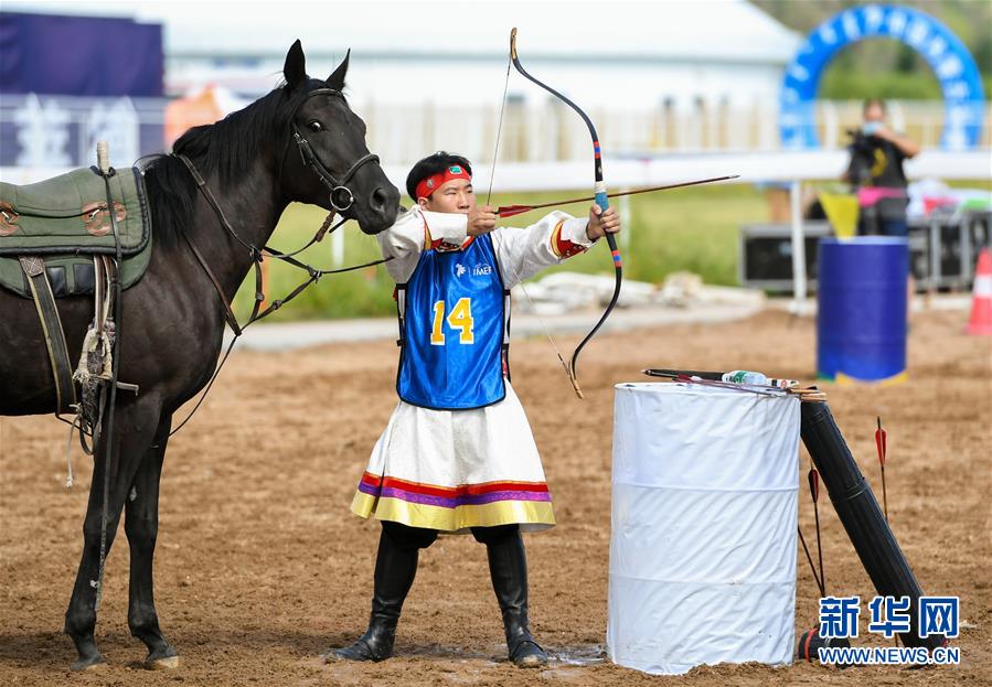 8月20日,騎手在“蒙古馬”傳統(tǒng)技巧表演中展示射箭。 當(dāng)日,“蒙古馬”傳統(tǒng)技巧表演在呼和浩特市內(nèi)蒙古少數(shù)民族群眾文化體育運(yùn)動中心舉行,此次表演共包括騎馬穿樁、射箭、騎馬拾哈達(dá)、騎馬繞桶等多個傳統(tǒng)馬術(shù)技巧項(xiàng)目。 新華社記者 彭源 攝
