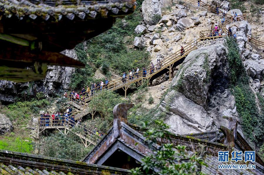 游客在天生三橋景區(qū)游覽(3月27日攝)。 隨著天氣轉暖,重慶武隆天生三橋景區(qū)風景如畫,氣勢磅礴的天生石橋和綠意盎然的山林相映成趣,吸引眾多游客前來踏春賞景。 新華社記者劉潺攝