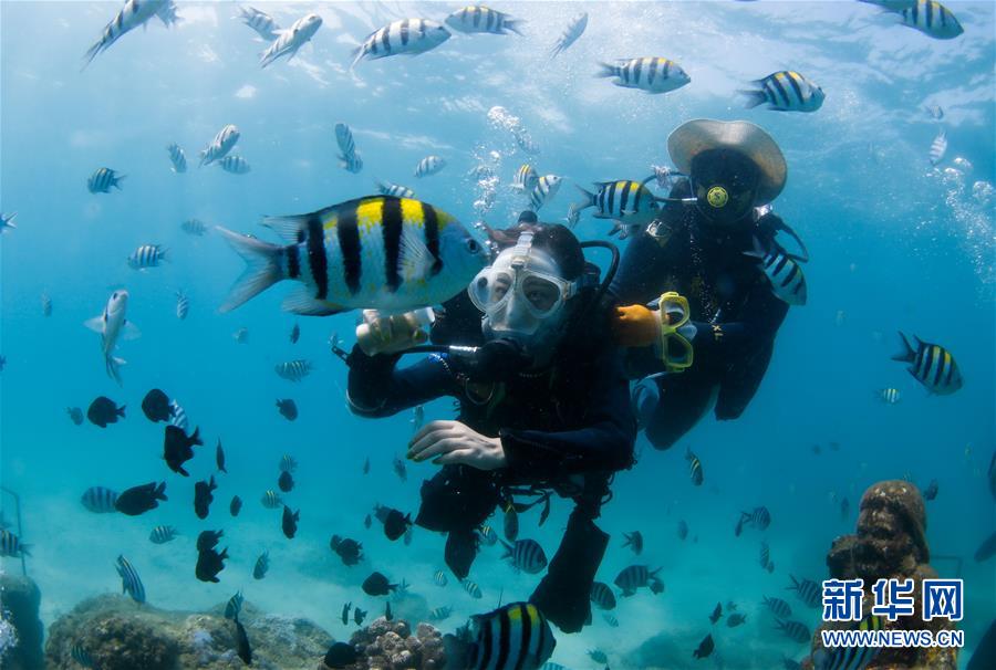 游客在分界洲島海域體驗(yàn)潛水(2019年7月20日攝)。新華社記者 楊冠宇 攝