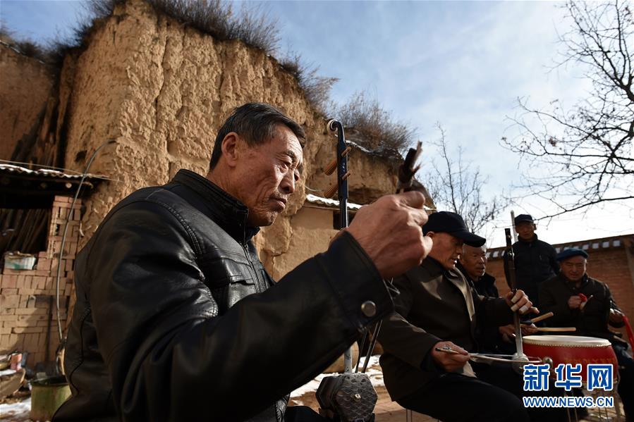 在武鄉(xiāng)縣大有鄉(xiāng)王莊溝村,村民演奏樂器為秧歌隊排練伴奏(2月15日攝)。  新華社記者 詹彥 攝