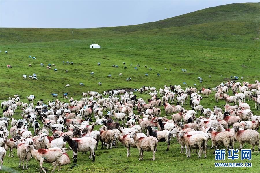 祁連山下牧場里的羊群(7月27日攝)。 新華社記者 吳剛 攝