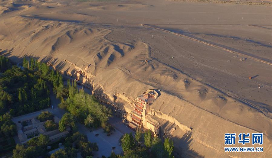 世界文化遺產(chǎn)莫高窟(2016年9月7日無(wú)人機(jī)拍攝)。新華社記者 陳斌 攝