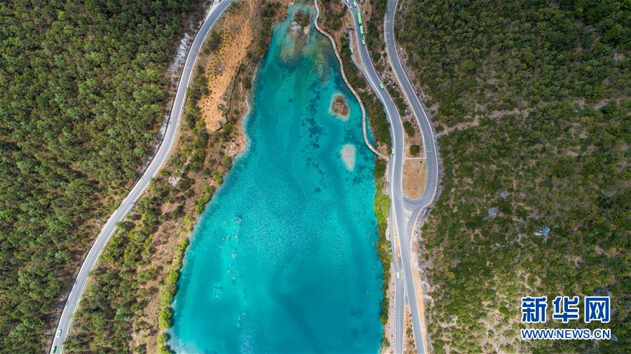 這是云南麗江玉龍雪山藍(lán)月谷景色(4月21日無人機(jī)拍攝)。 新華社記者胡超攝