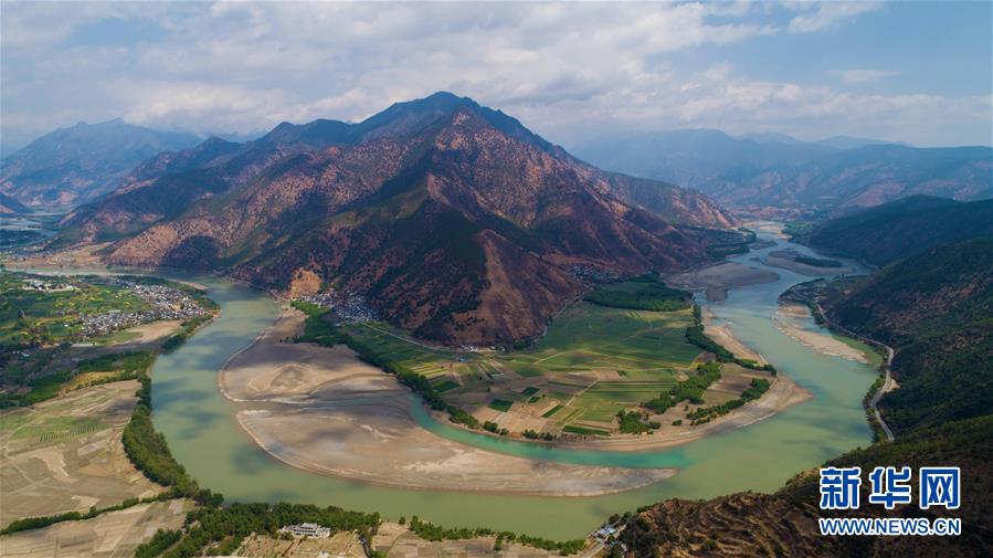 位于云南省麗江市玉龍納西族自治縣石鼓鎮(zhèn)的“長江第一灣”(3月17日無人機(jī)拍攝)。 新華社記者胡超攝