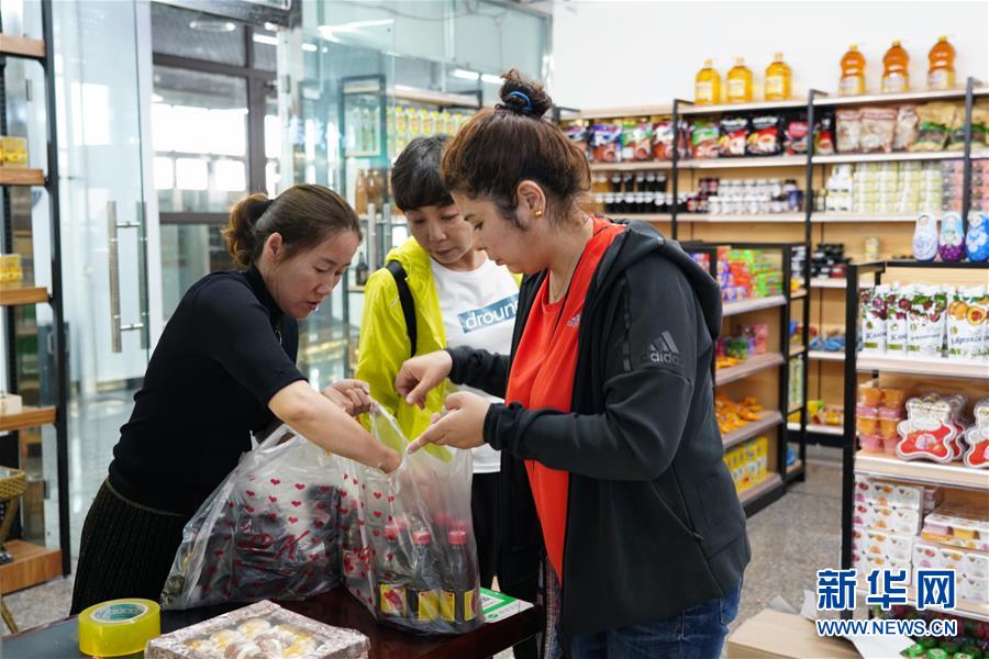 9月4日,在新疆塔城地區(qū)巴克圖口岸,顧客在絲路文化商品城內(nèi)購買商品。 新華社記者鄒予攝