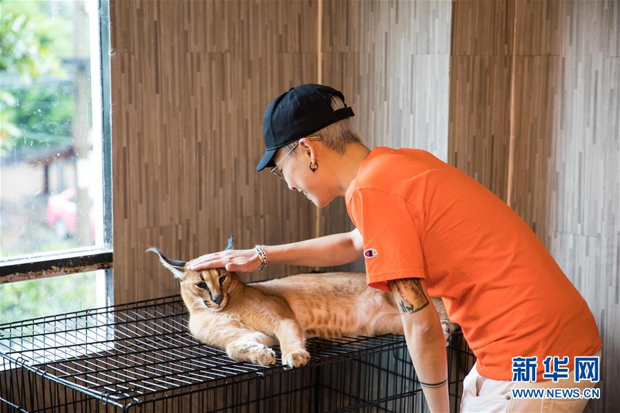 泰國首都曼谷有一間奇妙的動物咖啡館。在這里,顧客不僅能看到幾只可愛的貓咪,還可以在店員的陪伴指導下和貓頭鷹、闊耳狐等動物進行親密的接觸。 新華社記者 張可任 攝