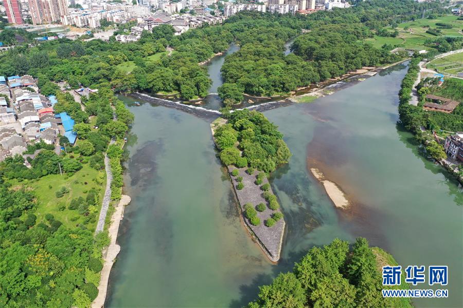 這是6月30日無(wú)人機(jī)拍攝的廣西興安縣靈渠。 位于廣西興安縣的靈渠是世界上保存最完整的古代水利工程之一,至今仍發(fā)揮著農(nóng)田灌溉、排洪泄洪作用。2018年,靈渠入選世界灌溉工程遺產(chǎn)名錄。 新華社記者 周華 攝
