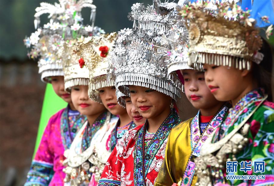 10月28日,在廣西融水苗族自治縣拱洞鄉(xiāng)龍令村,苗家小姑娘觀看民俗表演。新華社記者 黃孝邦 攝