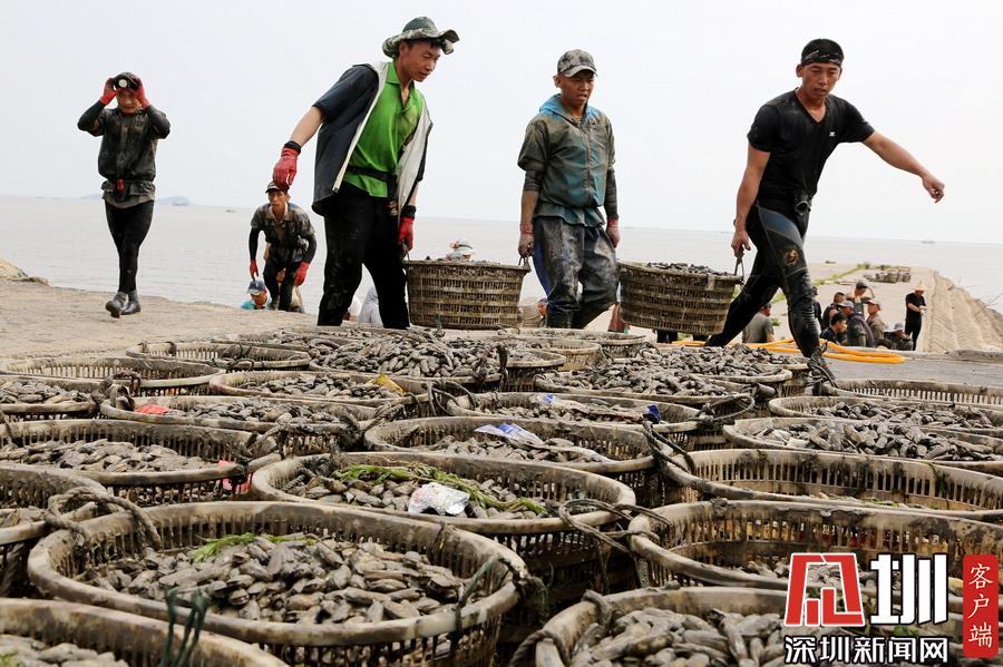 時(shí)下正是沿海地區(qū)海蟶收獲的季節(jié),在江蘇連云港海邊的灘涂上,漁民們將收獲的海蟶裝箱外運(yùn),一片忙碌。