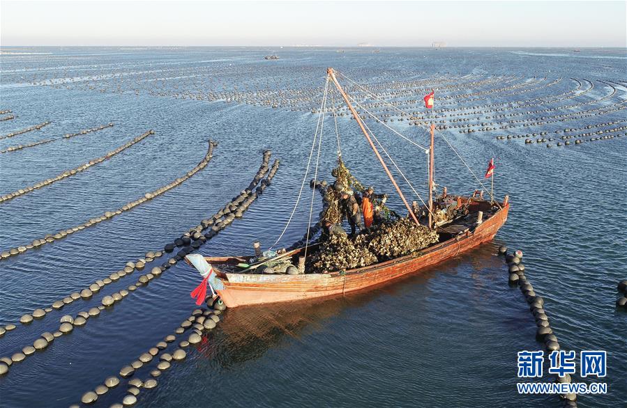 遼寧長海漁民打撈牡蠣 場面壯觀!