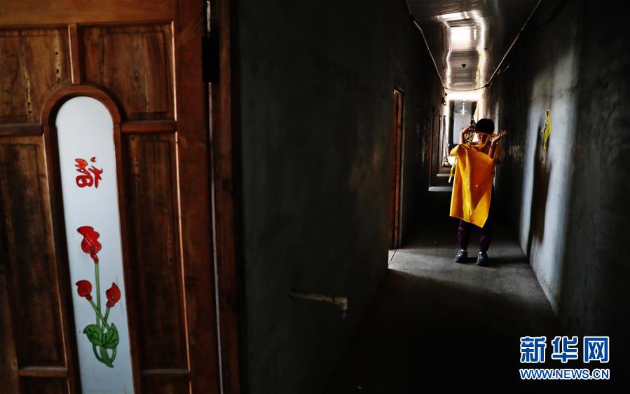 郭旗穿上工作服準(zhǔn)備去魚(yú)棚(9月6日攝)。 新華社記者 楊青 攝