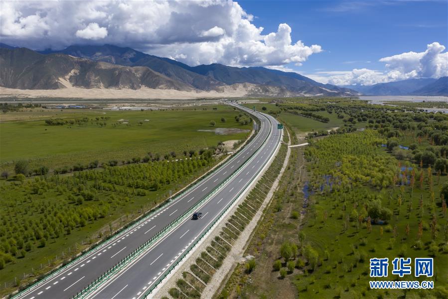 雅魯藏布江沿岸的公路(9月10日無人機(jī)拍攝)。 新華社記者 旦增尼瑪曲珠 攝