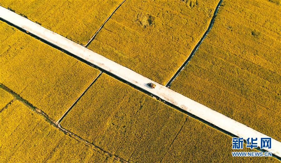 這是9月30日無人機(jī)拍攝的河北省涉縣白芟村的稻田。 近日,位于太行山下的河北省涉縣白芟村上千畝水稻逐漸成熟。從空中俯瞰,猶如一塊塊“調(diào)色盤”,美不勝收。 新華社記者 王曉 攝