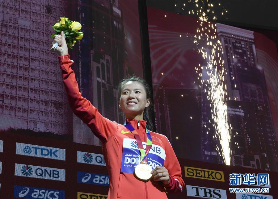 9月30日,中國選手劉虹在頒獎儀式上。新華社記者 徐速繪 攝