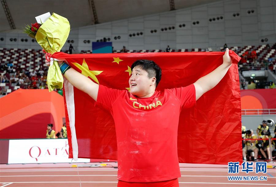 當(dāng)日,在卡塔爾多哈舉行的2019國(guó)際田聯(lián)世界田徑錦標(biāo)賽女子鉛球決賽中,衛(wèi)冕冠軍、中國(guó)選手鞏立姣以19米55的成績(jī)奪得冠軍。 新華社記者王麗莉攝